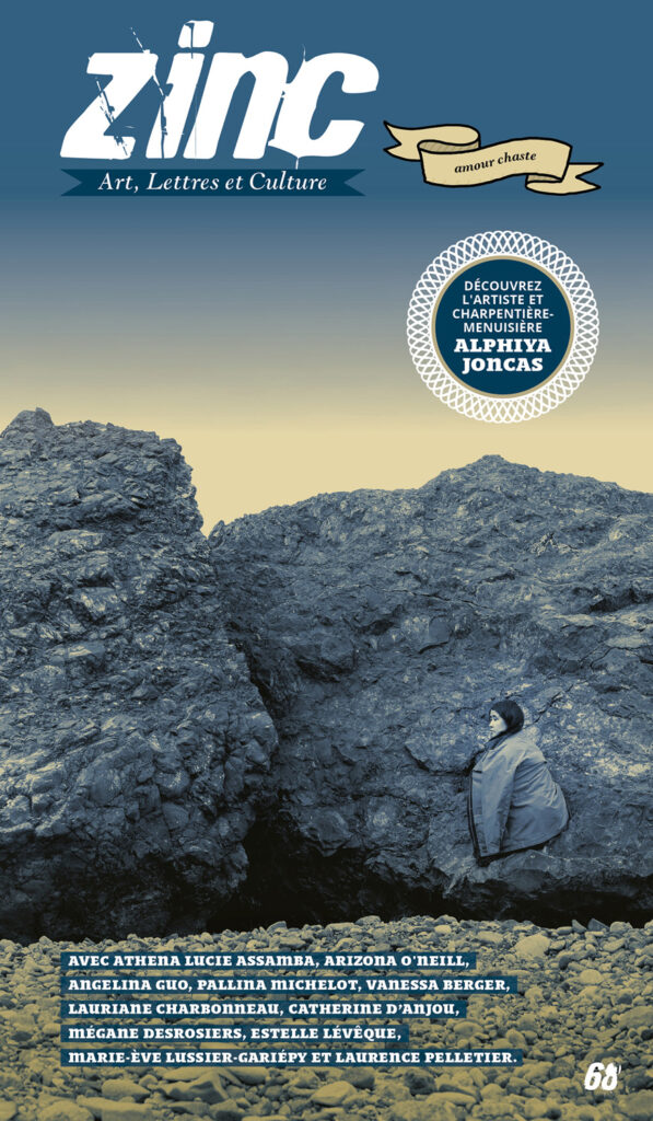 Dans ce numéro Pattie O’Green rencontre l’artiste et charpentière-menuisière Alphiya Joncas et Arizona O’Neill nous offre un entretien illustré avec Athena Lucie Assamba, une chorégraphe et interprète émergente en danse d’origine camerounaise. Vous trouverez également des textes de fiction par Angelina Guo, Pallina Michelot, Vanessa Berger, Lauriane Charbonneau, Catherine D’Anjou, Mégane Desrosiers, Estelle Lévêque, Marie-Ève Lussier-Gariépy et Laurence Pelletier.